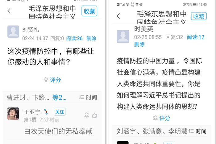 “今天的线上思政课让我了解了更多,思考的更多……”,钱宇浩同学在课后作业中这样评价第一堂思政课,为了上好非常时期的思政课,国产香蕉视频免费全体思政课教师发挥团队优势,多次开展集体备课,熟练掌握线上教学技术要求 91香蕉在线观看,相互学习,资源共享,一周以来,每位思政课教师根据统一课件和教案,进行了各具特色的演绎和阐释,在强信心,暖人心,聚民心的思想战场上,及时回应学生困惑,解开思想疙瘩,让青年学子感受到社会大课堂和思政小课堂同频共振的魅力。