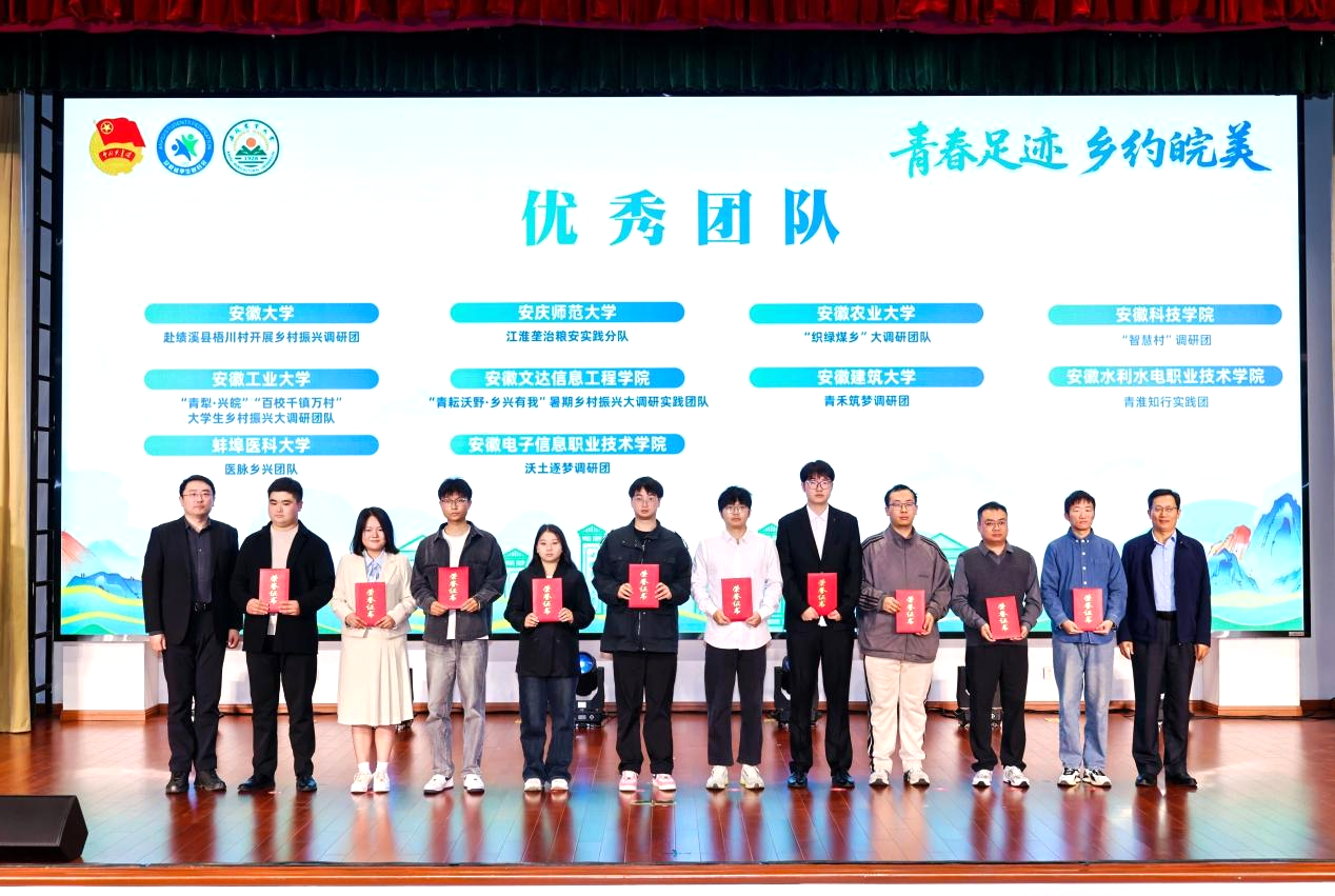 本网讯 近日,安徽省“百校千镇万村”大学生乡村振兴大调研总结大会在合肥落幕 91香蕉在线观看,我院李东宁,蔡琦老师指导的“沃土逐梦”调研团从全省千余支团队中脱颖而出,荣获“优秀团队”,钱世民同学获评“优秀个人”。