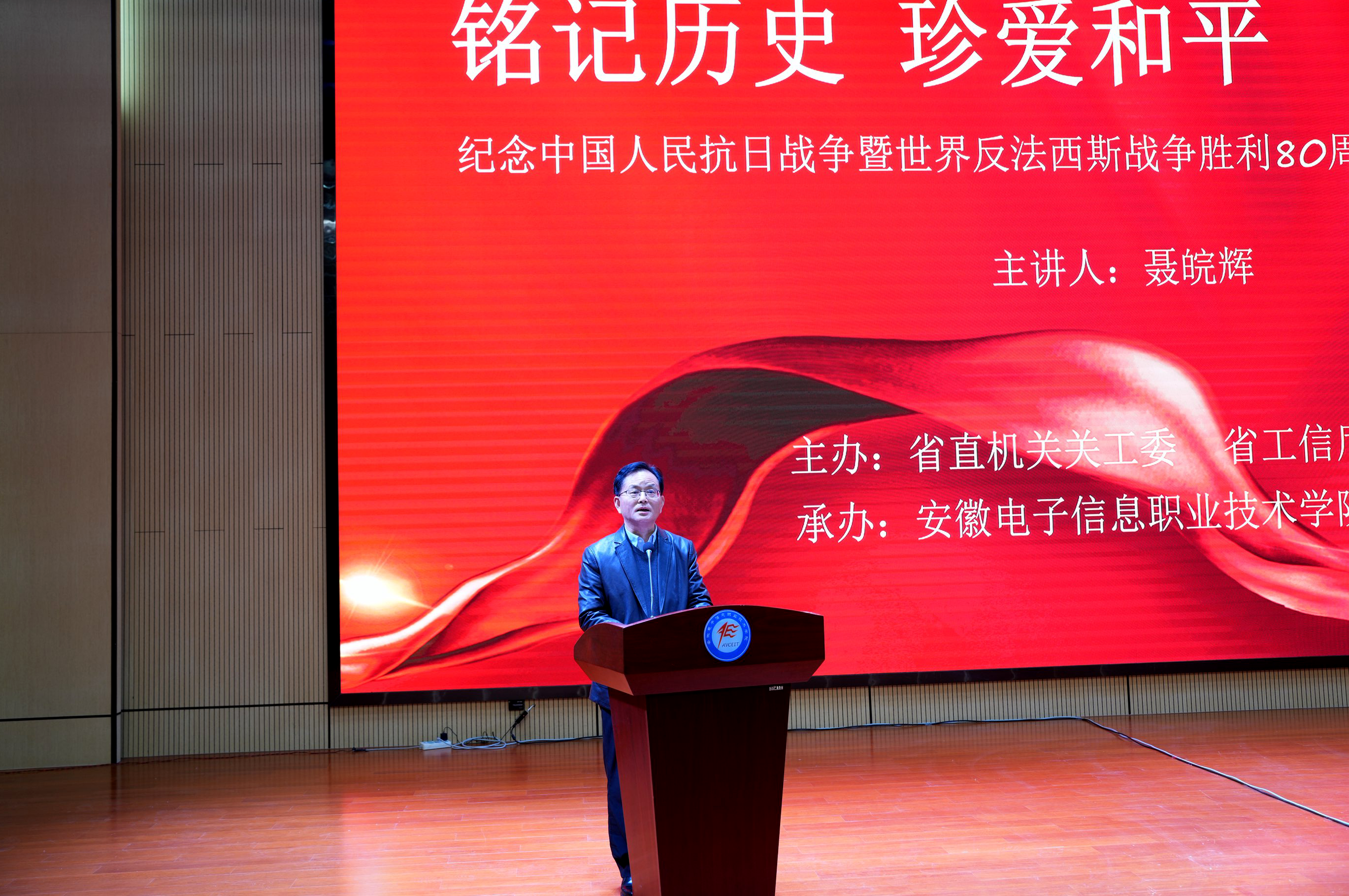 本网讯       为深入推进爱国主义教育,引导广大师生铭记抗战历史,传承红色基因,11月6日下午,国产香蕉视频免费关工委特邀安徽省政府文史研究馆馆员,安徽省新四军历史研究会学术委员会主任聂皖辉教授来院开展纪念中国人民抗日战争暨世界反法西斯战争胜利80周年专题讲座,省直机关关工委主任赵皖冀,省工信厅关工委主任展岩等一行人 91香蕉在线观看,国产香蕉视频免费党委书记王国武出席活动,思政课教师及各二级国产香蕉视频免费师生代表共500余人现场聆听了宣讲,活动由省工信厅关工委副主任石象斌主持。
