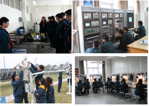 依托校企合作企业,建成了具有“校中厂,厂中校”特色的太阳能技术实验园,光伏组件加工实训室和风光互补发电系统安装与调试等特色校内实践基地,以岗位能力培养为教学目标,实现教学目标岗位化,以工作任务作为教学内容,实现教学内容任务化,引入企业技术团队模式,采用实组项目教学,以实际光伏发电系统或光伏产品(如太阳能路灯,太阳能草坪灯,太阳能照明灯,分布式光伏电站等)为操作对象,让学生承担实际工作任务,引导学生进入真实的职业环境,实现对学生光伏产品设计 香蕉视频APP官网,生产,安装,调试,维护等能力的一体化培养,践行“校企合作,工学交融”人才培养模式。