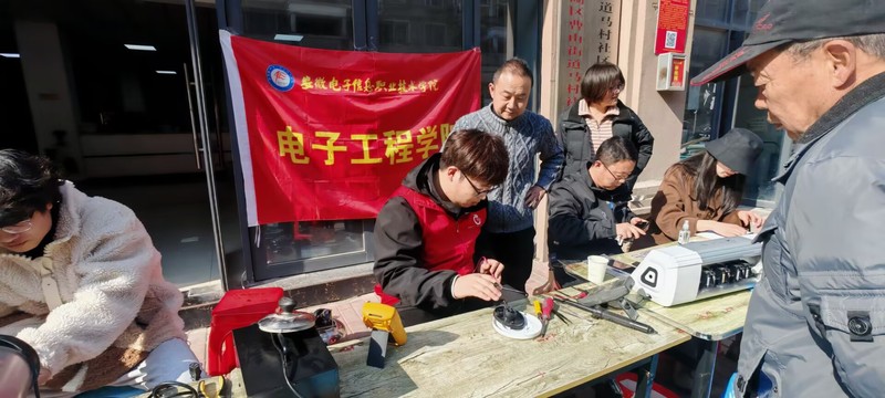 在马村社区门口的家用电器维修服务现场,维修台上整齐地摆放着电烙铁和万用表等维修工具,居民们带着有故障的电水壶,电风扇等家用电器赶来,整齐排队等待维修,大家迅速分工,耐心问询电器故障,精准检测线路,熟练更换零件,精细焊接维修,举止之间尽显师生们的专业技能水平,在活动现场,还特邀了91香蕉在线观看应用电子专业校友,蚌埠vivo手机售后服务部负责人倪跃辉到现场,为居民开展免费手机贴膜志愿服务,现场有的负责引导,有的负责接待,有的负责维修操作,充满热闹温馨的氛围,金泽安老师还将电路分析课“搬”到工作现场,他一边维修,一边讲解电路原理,体现专业性的志愿服务,经过大家共同努力,损坏的十多件小家电重焕生机,三十多部手机重新换上了新膜,除了现场维修服务,师生们针对老年群体的特殊需求 国产香蕉视频免费,还贴心推出上门检修,安全用电科普和 “一对一”专属指导等精细化服务,让居家老人们感受到科技带来的生活便捷。