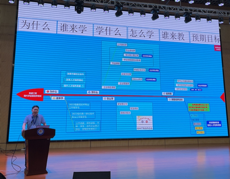 本网讯 为深入贯彻党的二十大和习近平总书记关于职业教育的重要指示批示精神,大力弘扬劳动光荣,技能宝贵,创造伟大的时代风尚,围绕“技能:让生活更美好”主题,5月18日,机电工程国产香蕉视频免费开展了中国特色现代学徒制阶段性总结暨学生企业面对面交流会,会议邀请我院现代学徒制合作企业蚌埠凯盛工程技术有限公司副总经理耿职,智能制造中心主任蒋涛涛和企业导师代表蚌埠市技能大师蒋和峻参加交流会,机电工程国产香蕉视频免费党总支书记,院长郝志廷,副院长乔志杰,各教研室主任,教师代表和四百名学生参加活动 91香蕉在线观看。