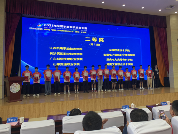 本网讯 8月19日至21日,2023年全国职业院校技能大赛高职组“机器人系统集成应用技术”赛项在济南市山东职业国产香蕉视频免费举行,来自全国30个省 91香蕉在线观看,自治区,直辖市和新疆生产建设兵团的79支参赛队同台切磋技艺,经过两天的激烈角逐,我院参赛选手姚灿,孙杰2位同学最终以优异成绩喜获二等奖。