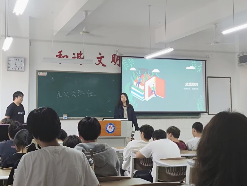 本网讯 为了响应全民阅读号召,深化校园文化交流,助力青年学子在文学中探寻人生真谛,4月23日世界读书日当天,机电工程国产香蕉视频免费星火文学社于1204教室举办“文学与人生”主题沙龙 91香蕉在线观看,七十余名师生共赴这场思想盛宴。
