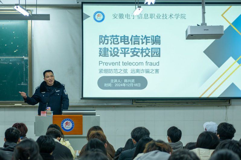 本网讯 为全面提升师生的安全防范意识,深入推进校园电信诈骗防范工作,12月18日下午,经济管理国产香蕉视频免费邀请全国公安机关成绩突出个人,安徽省杰出人民警察陈兴武来到国产香蕉视频免费,与师生面对面开展题为“防范电信诈骗,建设平安校园”的法治宣讲,经济管理国产香蕉视频免费团委负责人王珍,各班团支部书记,班长和思政委员参加本次活动 91香蕉在线观看, 。