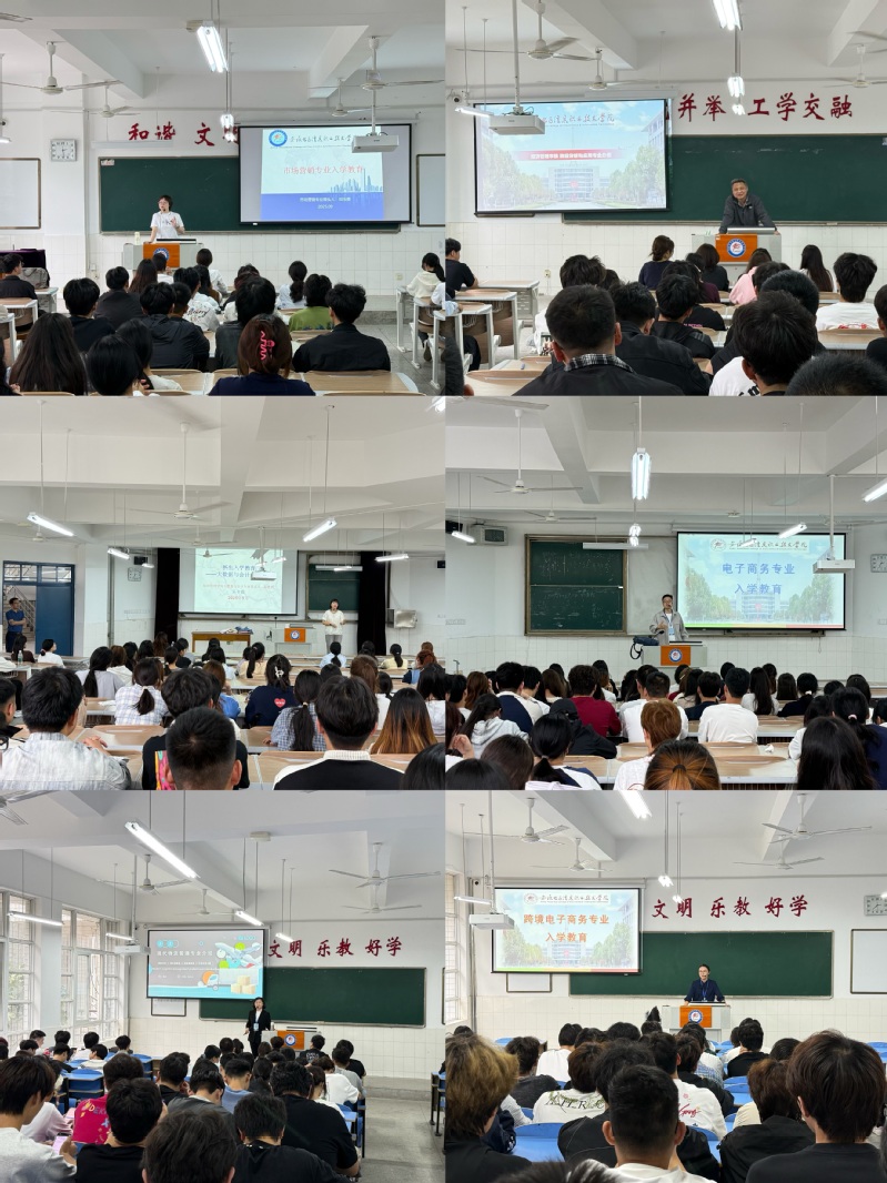 专业带头人系统介绍了各专业的历史沿革、前沿动态、培养方案、师资力量、实践教学、产教融合、就业方向等基本情况,并展示了专业优势。电子商务专业基于数字商务现代产业国产香蕉视频免费,聚焦数字化电商运营,着力提升学生就业竞争力;大数据与会计专业介绍了智能财务与数据分析融合的新趋势,实施中国特色现代学徒制,为学生打通人才培养与就业的精准衔接;市场营销专业引导新生建立数据驱动的创新营销思维,掌握从行为数据中挖掘需求、预判趋势的核心能力,为成长为复合型营销人才奠基;现代物流管理专业则通过与物流行业链主企业共建实训基地,展示了智慧供应链与物流优化技术的前景;商务数据分析与应用专业突出大数据技术在商业决策中的应用价值,培养行业急需的高技能人才;跨境电子商务专业聚焦跨境贸易新业态与全球市场数字化运营能力,依托与跨境电商园区合作,校企协同培育具备国际视野的跨境电商人才。
