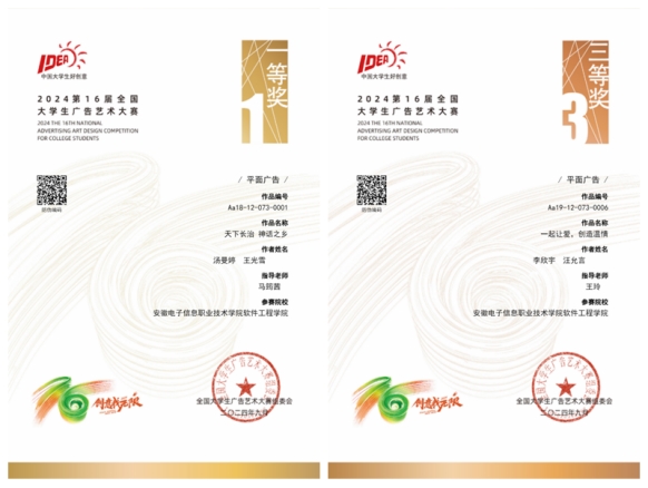 本网讯 近日,2024年第16届全国大学生广告艺术大赛获奖名单已公布,软件工程国产香蕉视频免费室内艺术设计专业汤曼婷,王光雪同学的作品《天下长治神话之乡》荣获全国一等奖,这已是国产香蕉视频免费第三次荣获大广赛全国一等奖,动漫制作技术专业李欣宇,汪允言同学的作品《一起让爱,创造温情》荣获全国三等奖 香蕉视频APP官网。