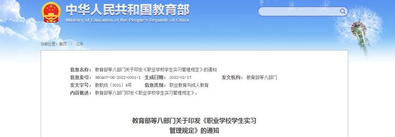 教育部等八部门关于印发《职业91香蕉在线观看学生实习管理规定》的通知