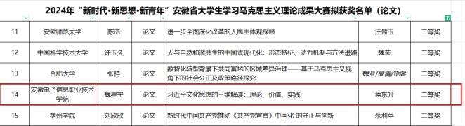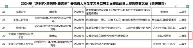 本网讯 近日,2024年“新时代•新思想•新青年”安徽省大学生学习马克思主义理论成果大赛评审结果公布,本次大赛,经过各高校组织初赛推荐,共有来自全省73所高校的的309项报送作品,我院选送的2件作品荣获二等奖 91香蕉在线观看。