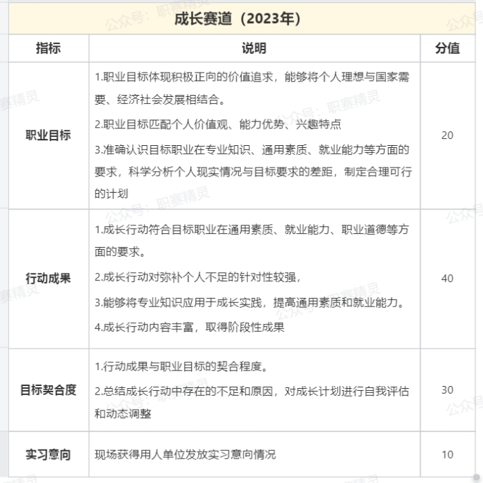 考察内容:从“考察学生职业发展规划的科学性和围绕实现职业目标 的成长过程,通过学习实践持续提升职业目标的达成度,增强综合素质和能力,”改为“考察学生树立生涯发展理念并合理设定职业目标,围绕实现目标持续行动并不断调整的成长过程,通过学习实践提升综合素质和专业能力 香蕉视频APP官网,体现正确的择业就业观念,参赛学生可获得实习机会,”。