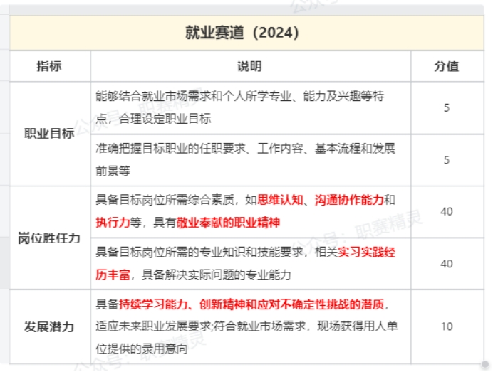 备赛重点:从以上可以看出,就业赛道就业指向性非常明确,就是考察求职就业的竞争力,所以,备赛时,首先,需要深入调研就业市场需求,全面了解目标职业的任职要求、工作内容、基本流程和发展前景等,积极参与相关实习实践活动,提升解决实际问题的专业能力。还要注重培养持续学习能力和创新精神,提高应对不确定性挑战的能力,以更好地适应未来职业发展,确保自身符合就业市场需求。