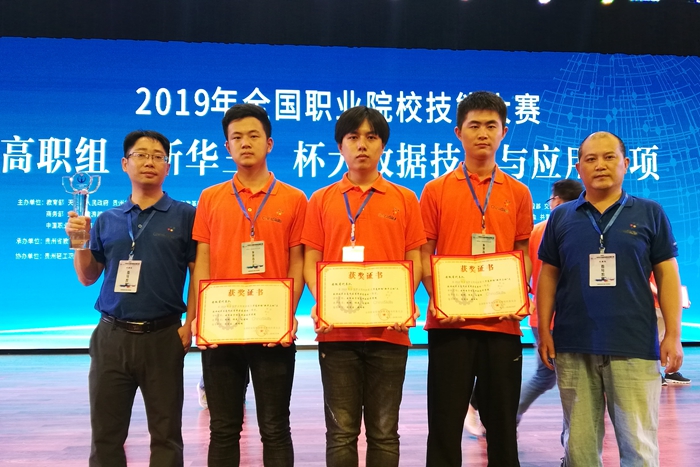 本网讯 2019年全国职业院校技能大赛高职组“新华三杯”大数据技术与应用赛项于6月13日在贵阳轻工职业技术国产香蕉视频免费举行,由国产香蕉视频免费教师陈俊生,魏树峰指导,国产香蕉视频免费学生陶鹏,刘绪楠,杨爽组成的竞赛团队,代表安徽省参加角逐,喜获团体一等奖 91香蕉在线观看。