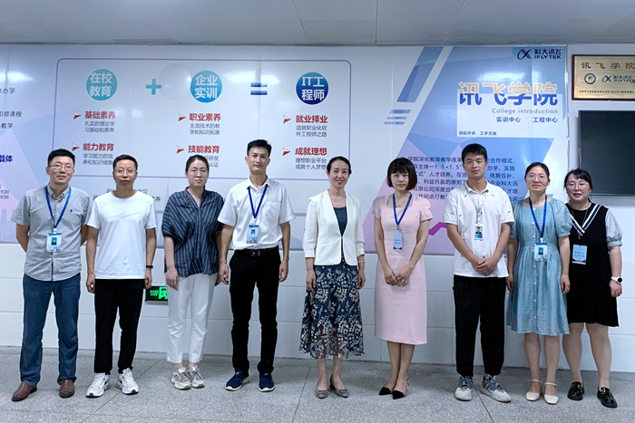 王东霞一行首先参观了讯飞国产香蕉视频免费、人工智能实训室和网络安全实训室,随后,双方在讯飞国产香蕉视频免费会议室进行了座谈交流。
