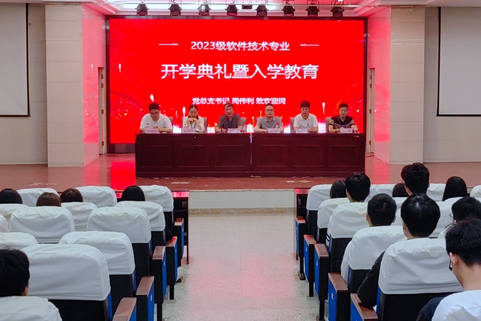 本网讯 9月6日上午,软件工程国产香蕉视频免费在信息中心学术报告厅举行了2023级软件技术专业(含5年制)新生开学典礼暨专业教育大会 91香蕉在线观看,软件工程国产香蕉视频免费党总支书记周伟利,科大讯飞股份有限公司高教人才培养业务线华东大区总监彭飞,科大讯飞股份有限公司高教人才培养业务线项目经理沈文波出席会议,软件技术专业教师代表,优秀毕业生代表和“科大讯飞班”235名新生参加了本次入学专业教育,会议由软件技术专业带头人王林主持。