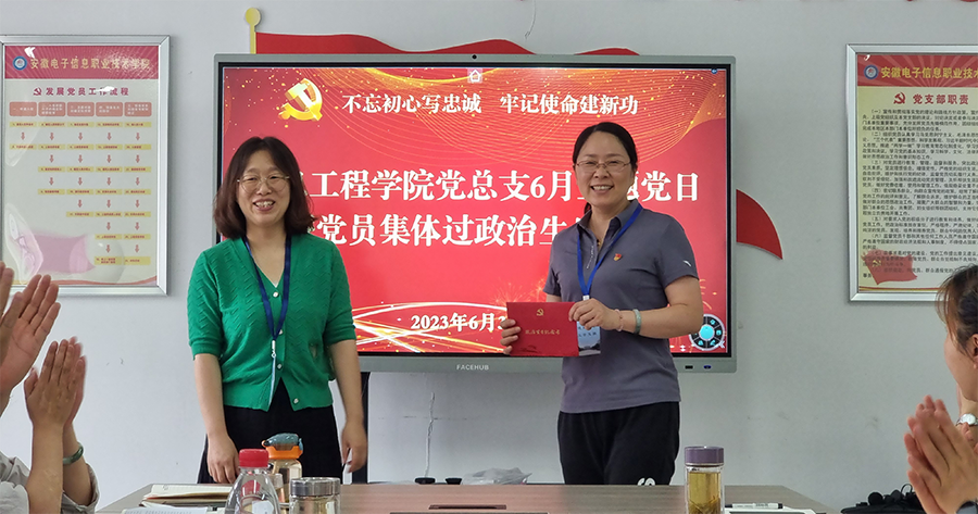 本网讯 为庆祝中国共产党成立102周年,同时把主题教育成果转化成广大党员干事创业的不竭动力,进一步引导广大党员牢记党的宗旨,增强党员身份认同感和荣誉感,提升党组织的凝聚力,号召力和战斗力,6月30日下午,信息工程国产香蕉视频免费党总支在信息中心南306会议室,以送出一句生日祝福语 91香蕉在线观看,赠送一张“政治生日”贺卡,回忆一次入党初心,发表一段生日感言,重温一次入党誓词“五个一”为主要内容,开展“不忘初心写忠诚,牢记使命建新功”党员集体过“政治生日”主题党日活动,党委委员,副院长马莉莉和部门全体党员参会,会议由党总支书记,院长朱正月主持。