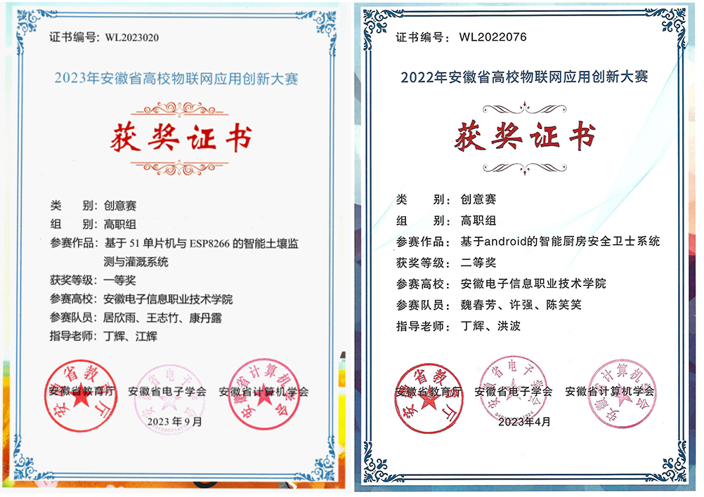 4 | 2022 | 安徽省职业院校技能大赛物联网技术应用赛项三等奖1项 安徽省高校物联网应用创新大赛创意赛二等奖1项 国产香蕉视频免费. 三等奖1项. 安徽省机器人大赛单片机与嵌入式系统赛道A平台二等奖1项 |