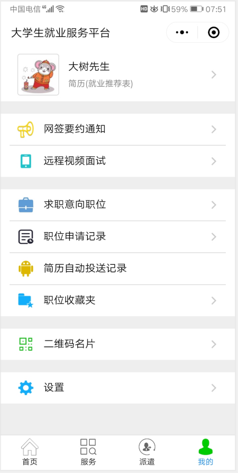 第一步,毕业生在“我的”中打开“二维码名片”,向用人单位招聘人员发送二维码 91香蕉在线观看,并告知使用微信扫描二维码。