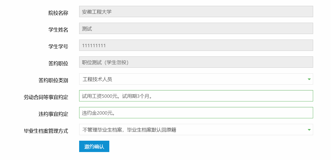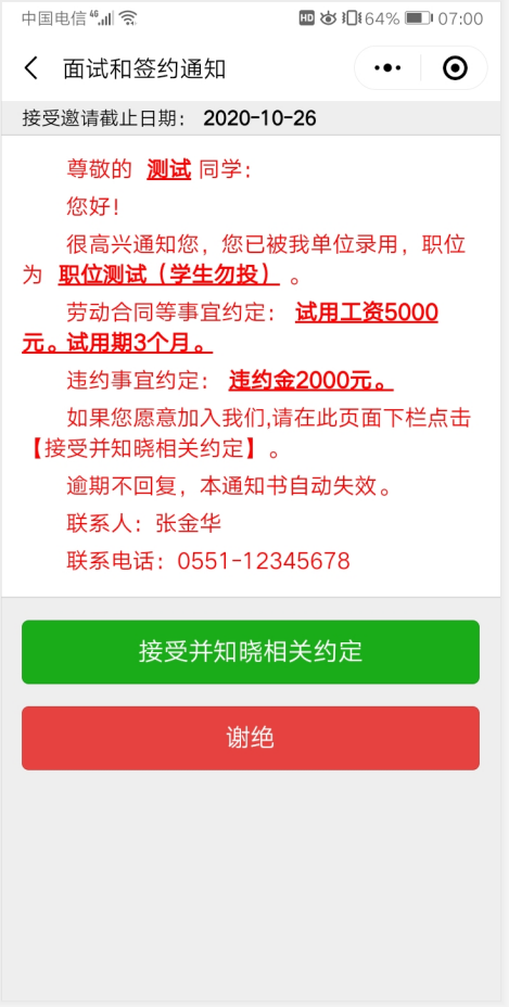 第三步、毕业生收到签约通知,并选择是否接受签约邀请。